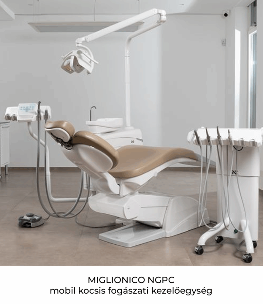 Az NG fogászati egységet állítható, üveg felületű, kapacitív érintéses technológiával ellátott kezelőpanel jellemzi. A panel elforgatása lehetővé teszi, hogy mindig a megfelelő rálátást élvezhesse a kijelzőre mind ülő, mind álló munka közben. A kezelőpanel könnyen fertőtleníthető a biztonsági képernyőzár funkcióknak köszönhetően.