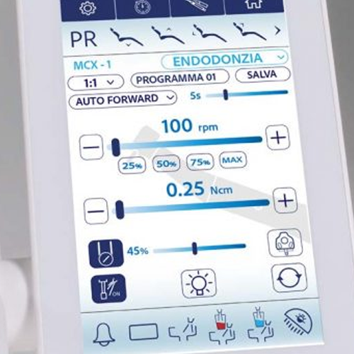 Konzervatív funkciók és Endo funkciók 10 memóriahellyel a Bien Air MCX mikromotorhoz. Az alapfelszereltség részét képezi a CRUISE CONTROL funkció, hogy a mikromotor anélkül működjön, hogy a lábat a lábkapcsolón kellene tartani.