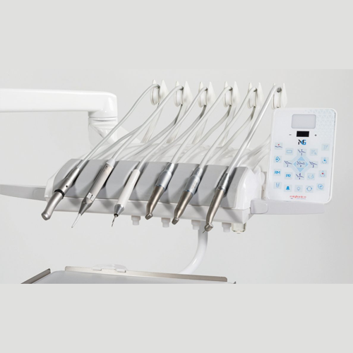 Az NG fogászati egységet állítható, üveg felületű, kapacitív érintéses technológiával ellátott kezelőpanel jellemzi. A panel elforgatása lehetővé teszi, hogy mindig a megfelelő rálátást élvezhesse a kijelzőre mind ülő, mind álló munka közben. A kezelőpanel könnyen fertőtleníthető a biztonsági képernyőzár funkcióknak köszönhetően.